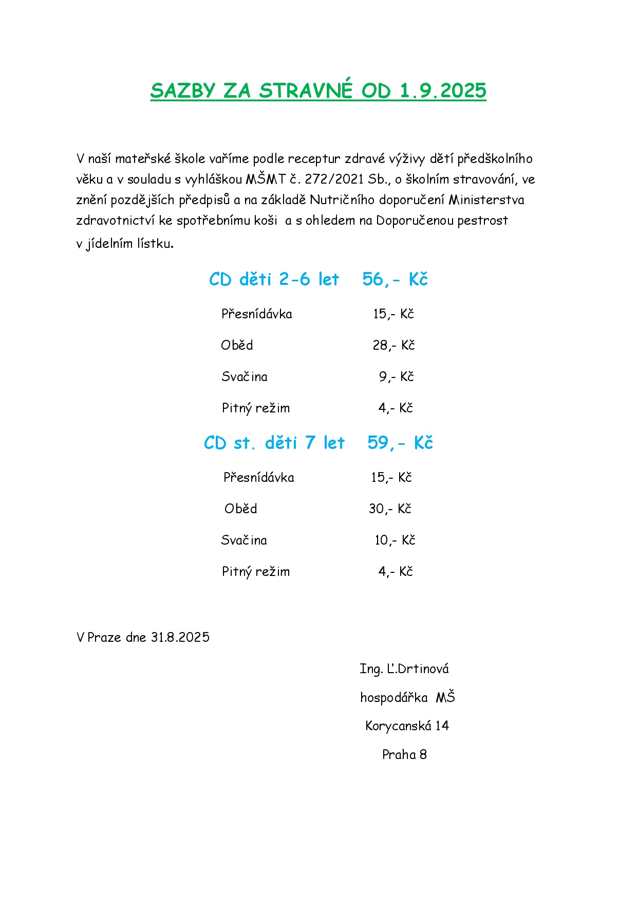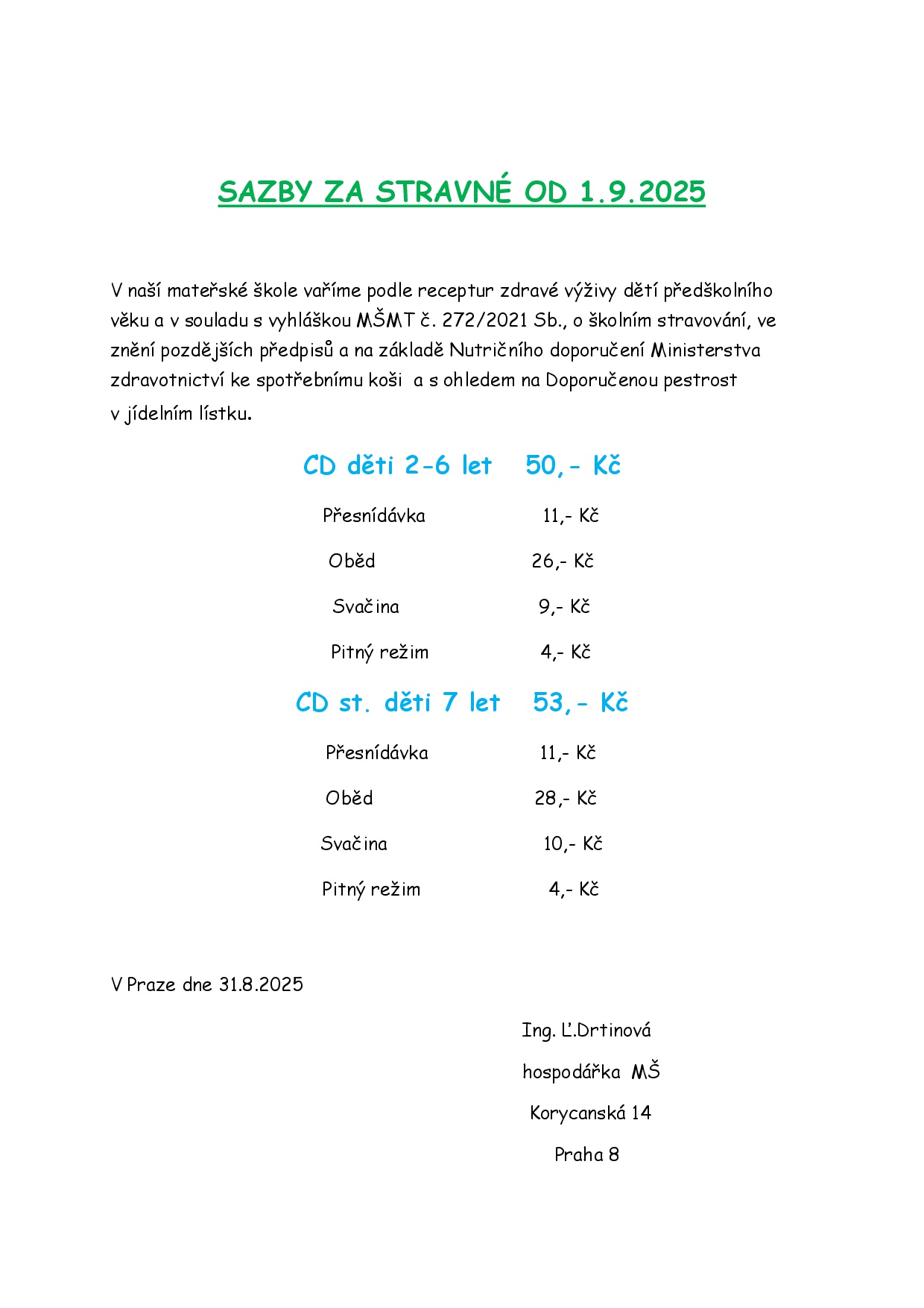 ŠKOLNÉ 1500.-Kč měsíční celodenní
